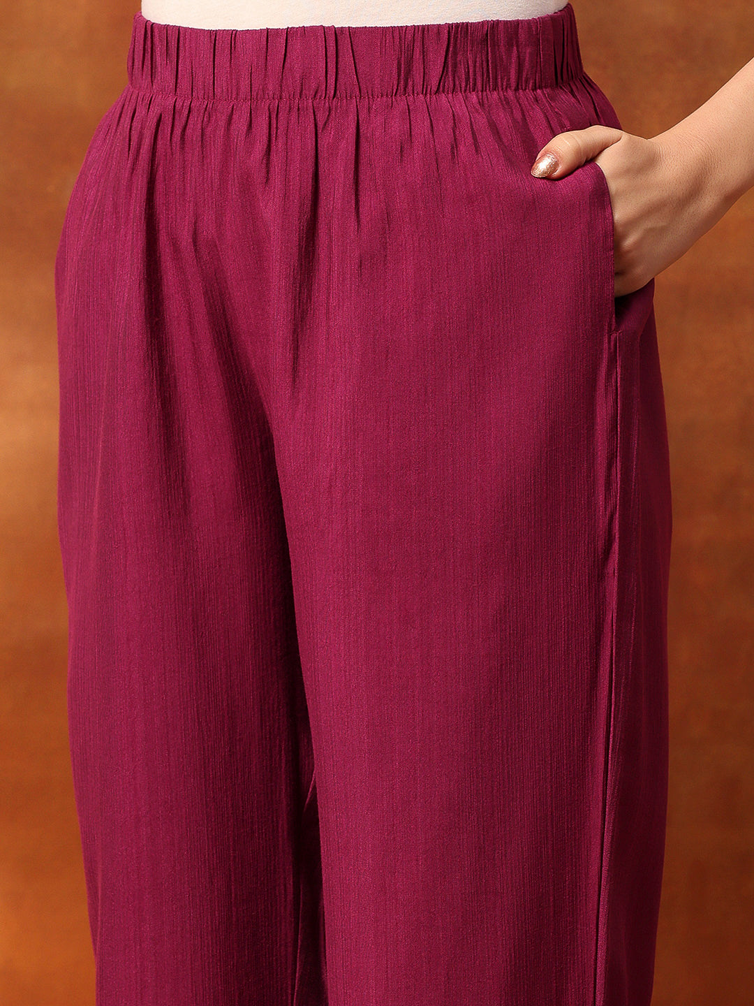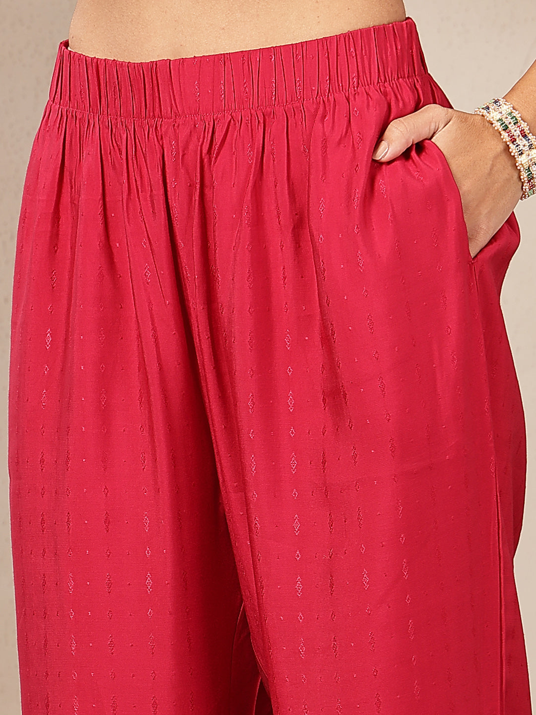 Zari Embroidered Kurta Set with Elasticated Palazzo & Tassel Art Silk Dupatta