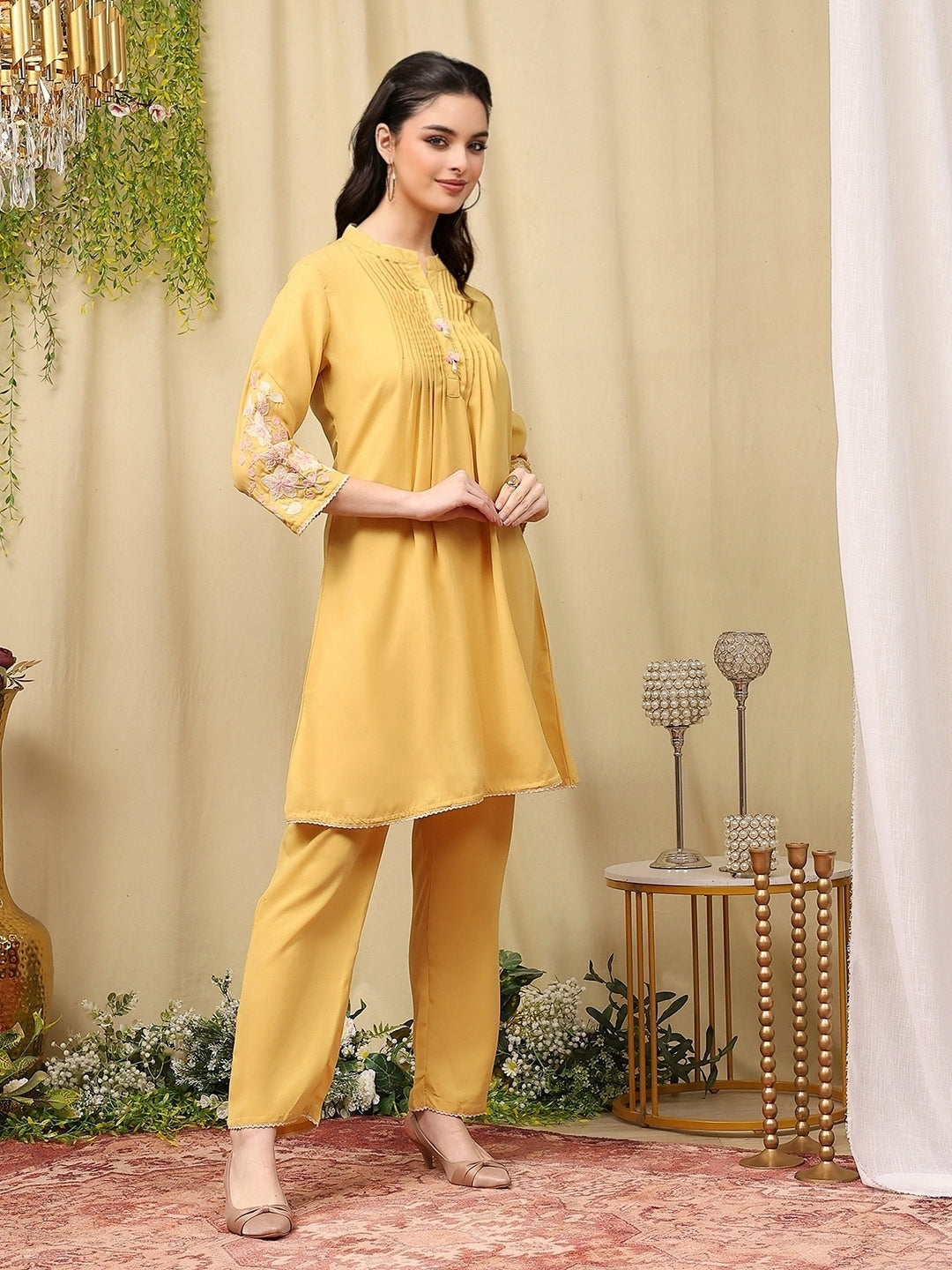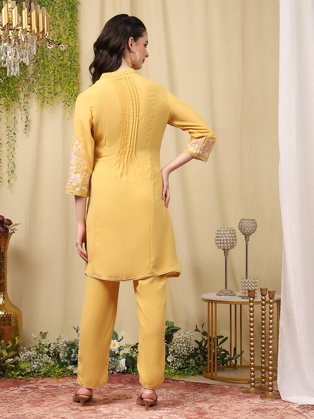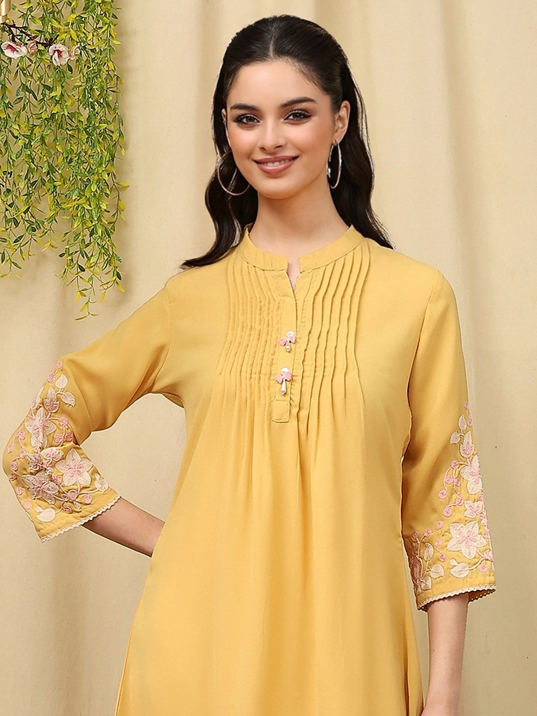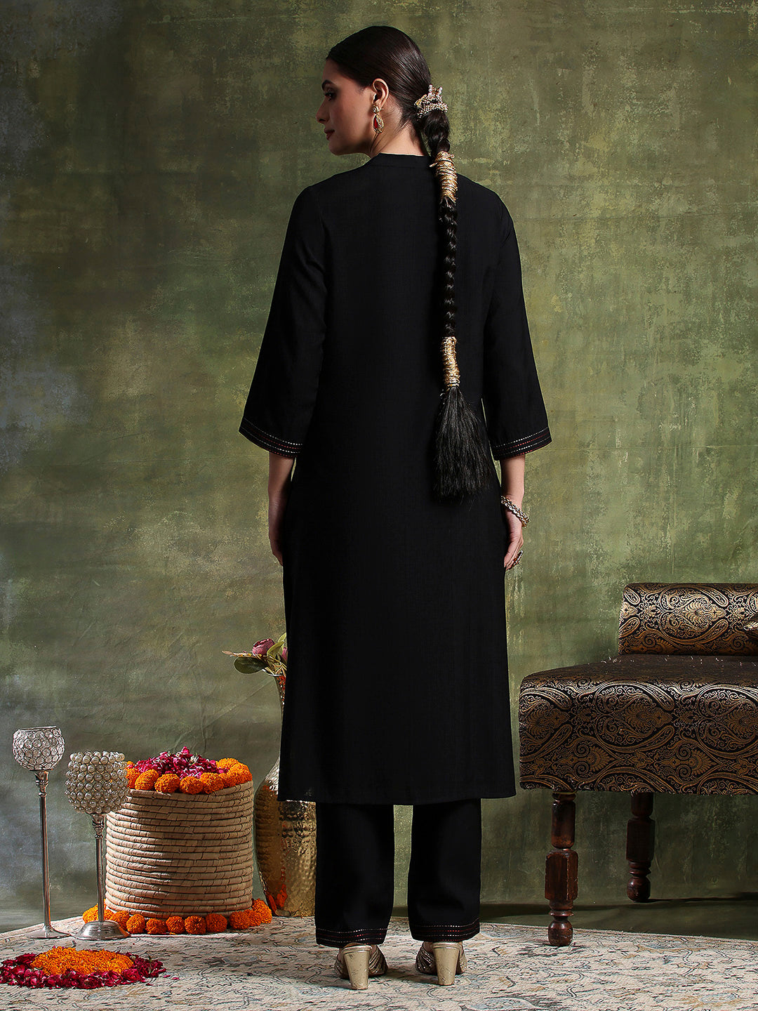 Poly Viscose Kurta Set with Zari-Embroidered Mandarin Collar