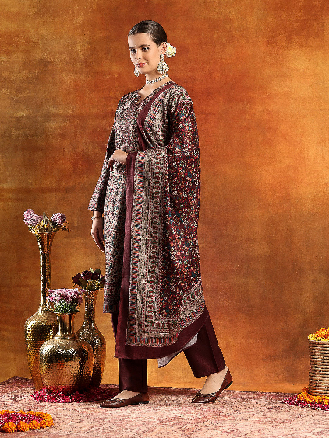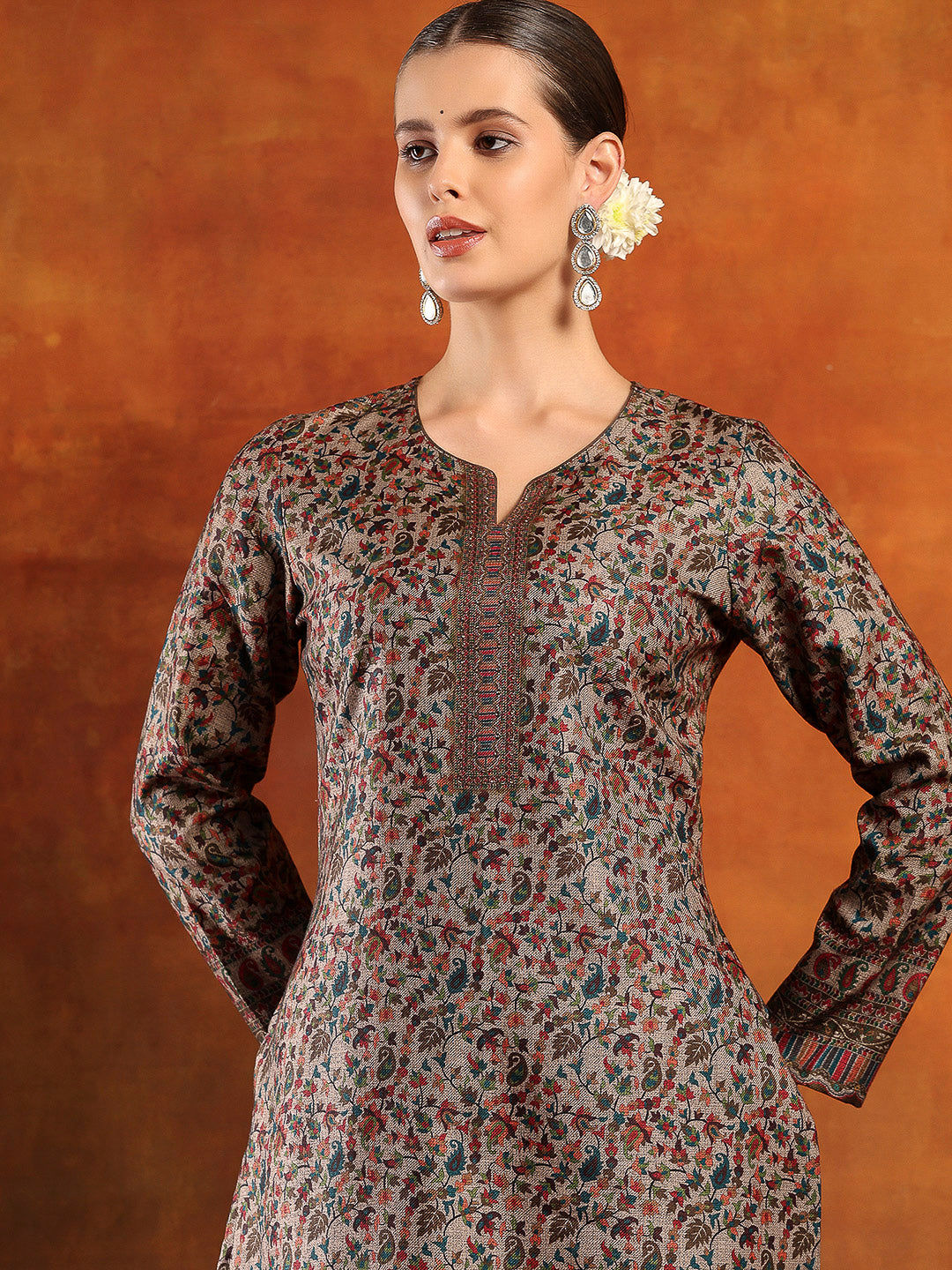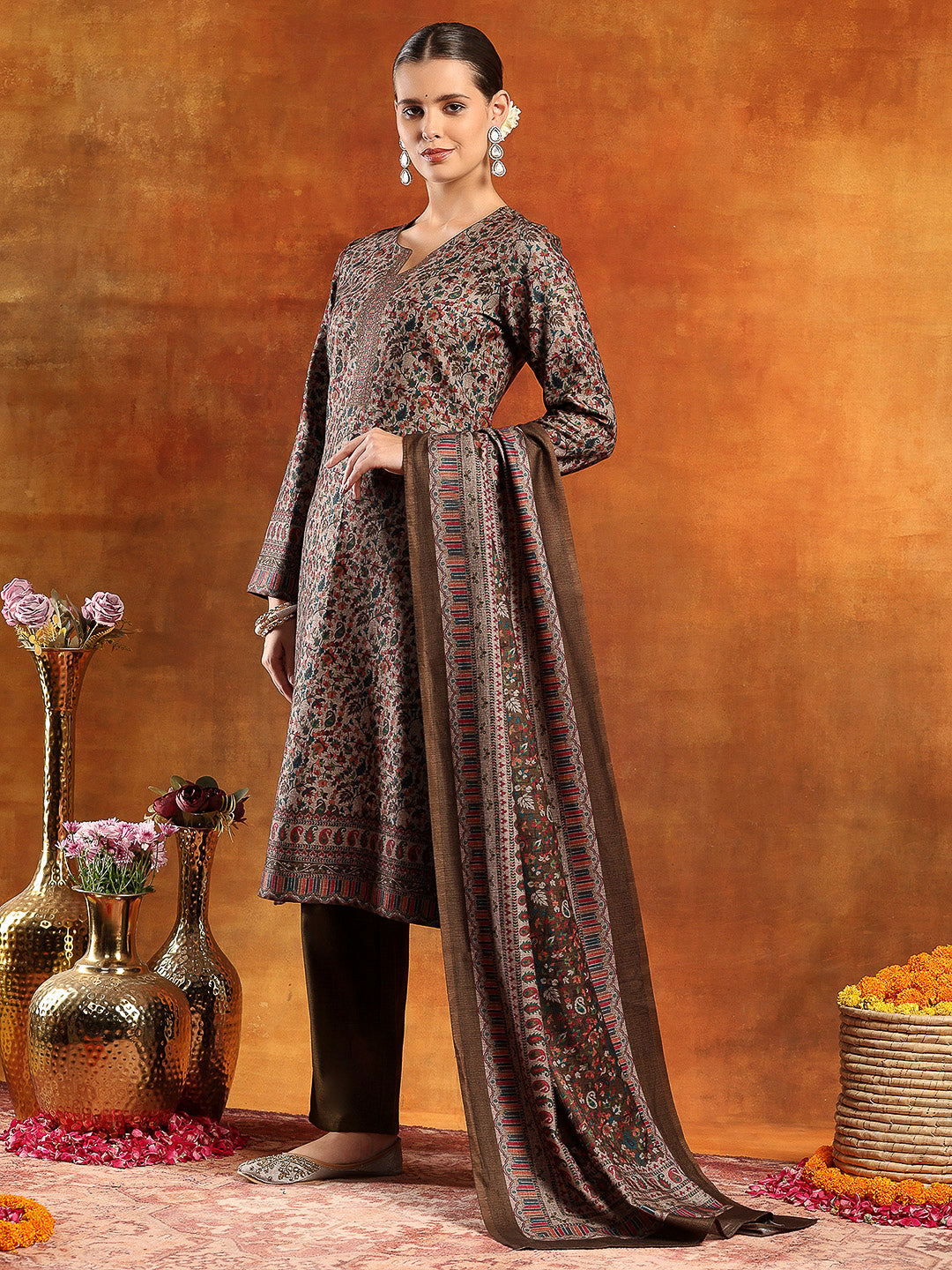 Pashmina Kani Print Kurta Set with Swarovski Yoke & Wool Dupatta