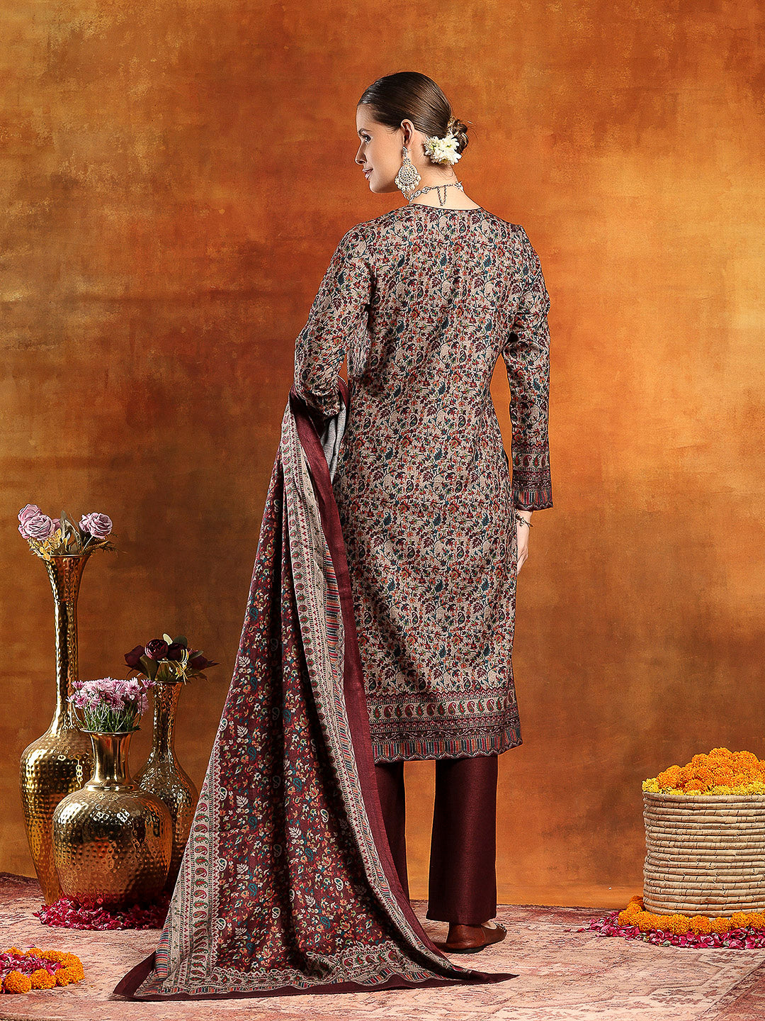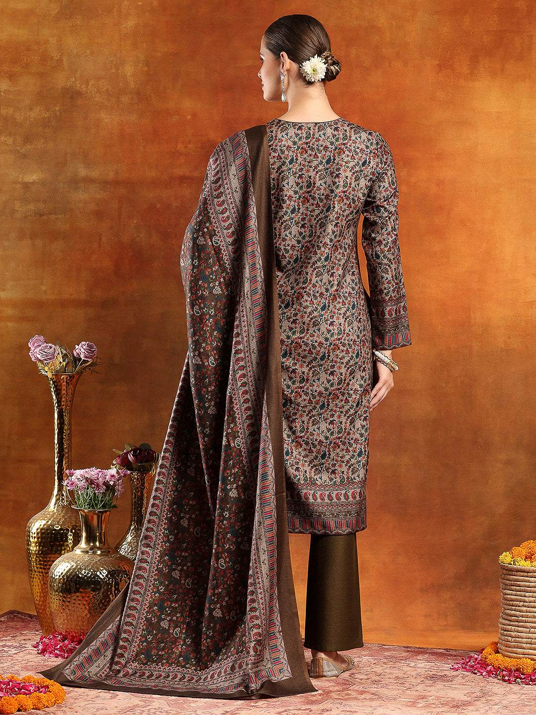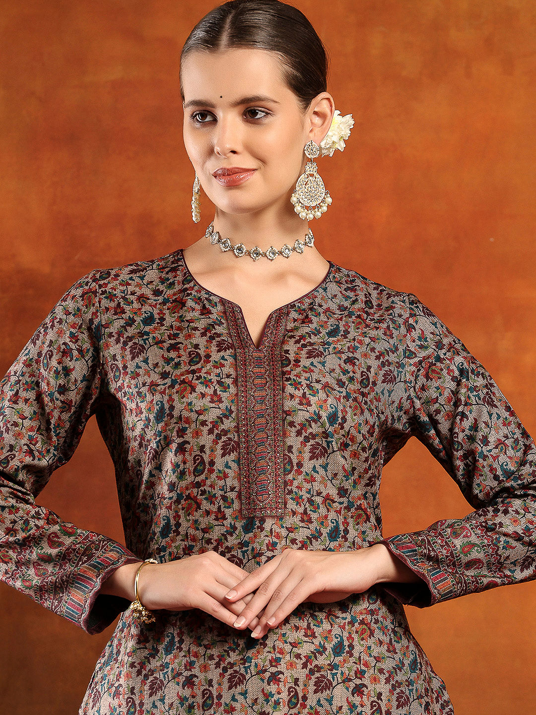 Pashmina Kani Print Kurta Set with Swarovski Yoke & Wool Dupatta
