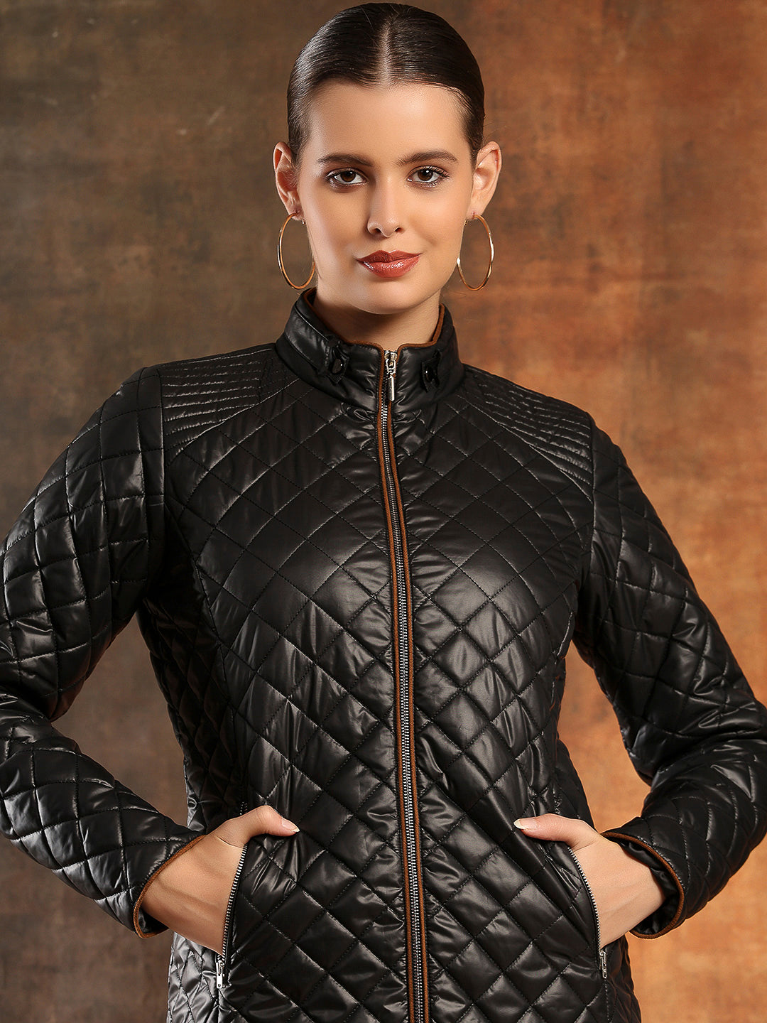 Ponzi Quilted Jacket with High Collar & Zip Closure