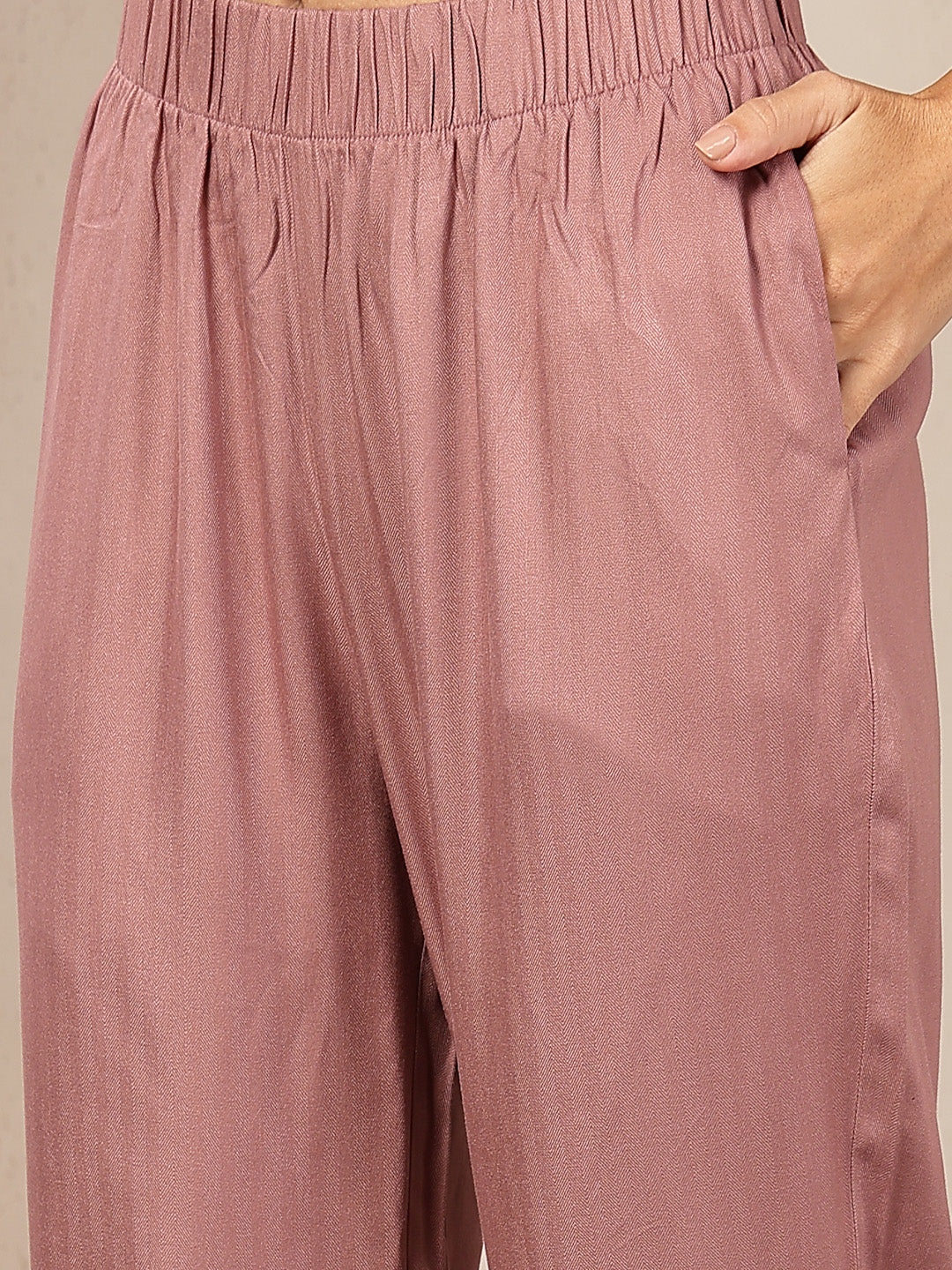Rayon Kurti & Palazzo Co-Ord Set with Embroidered Yoke