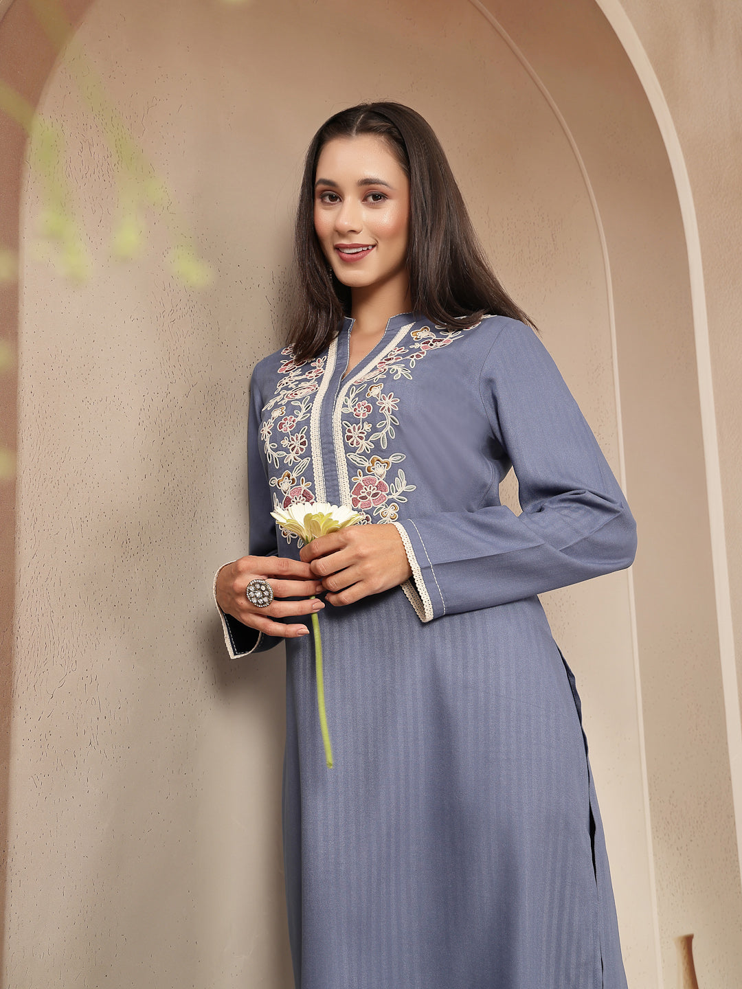 Pure Cotton Kurta Set with Lakhnavi Embroidery & Pockets
