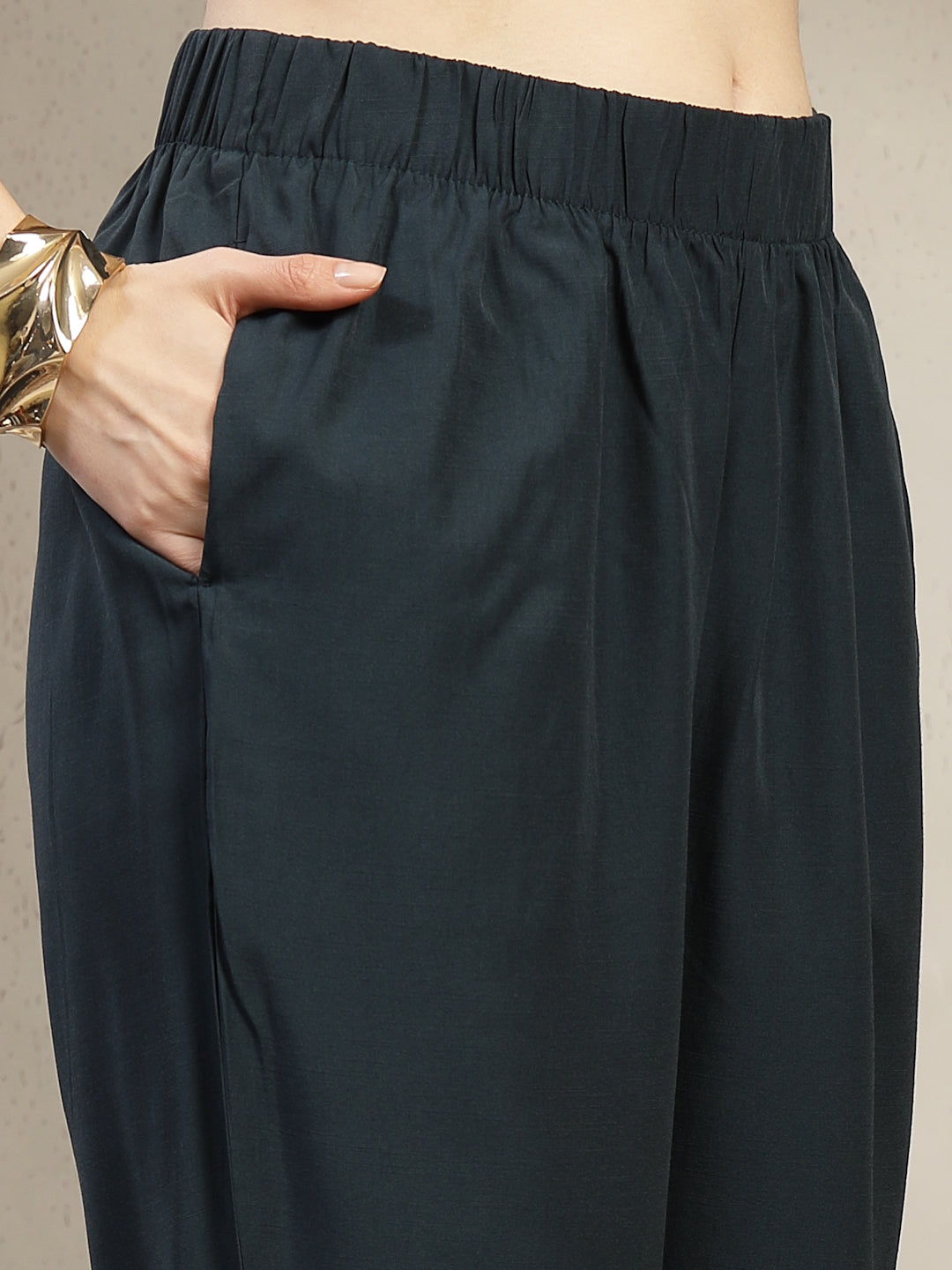 Solid Straight Viscose Kurta with Embroidered Yoke & Sequin Side Slit Palazzo