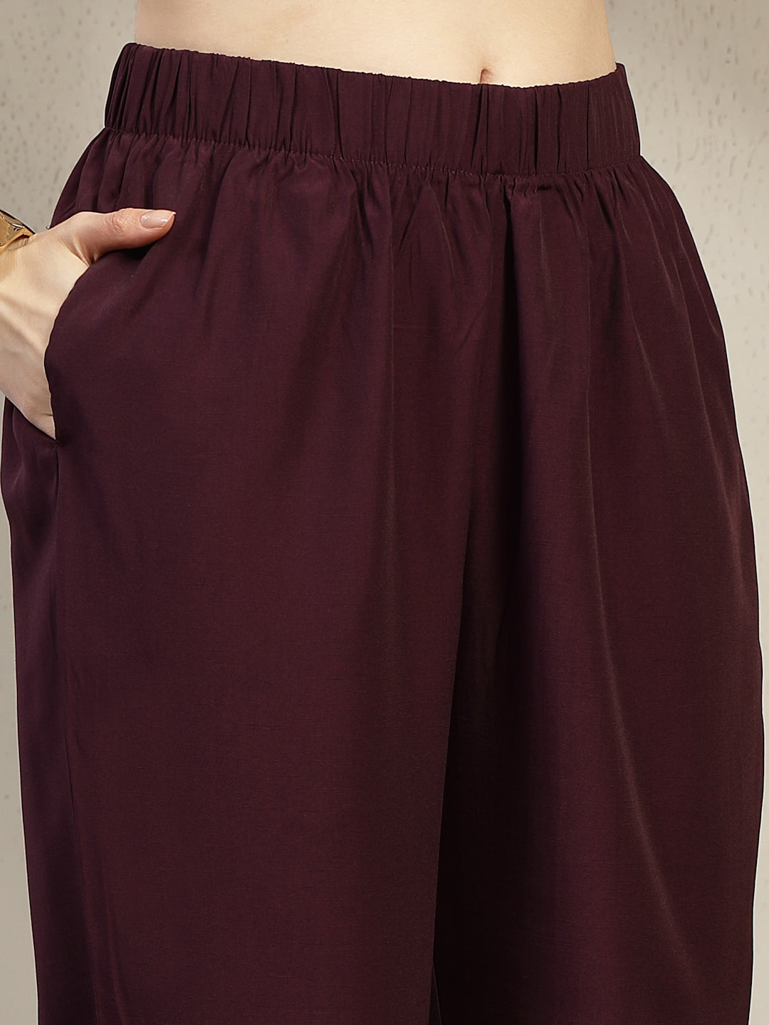 Solid Straight Rayon Kurta with Ethnic Embroidery and Palazzo Set