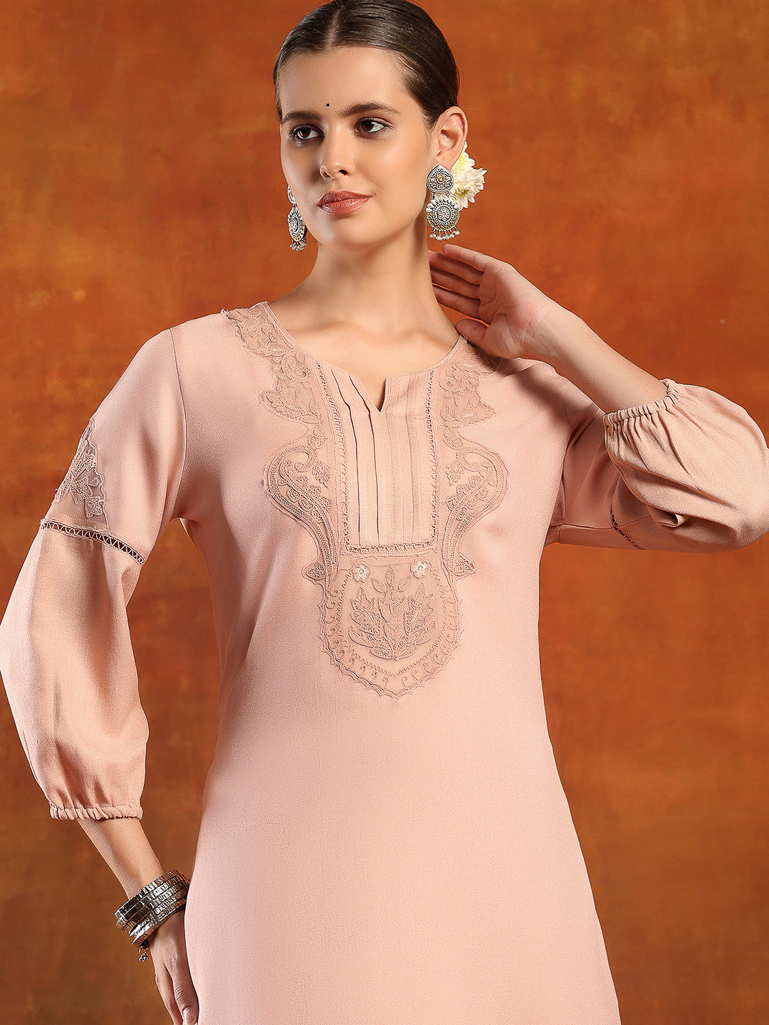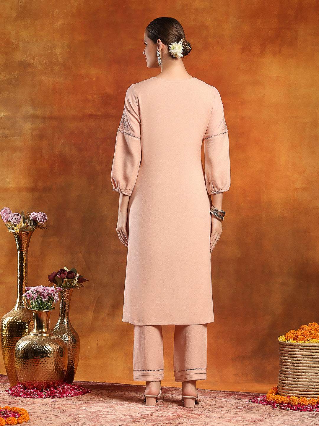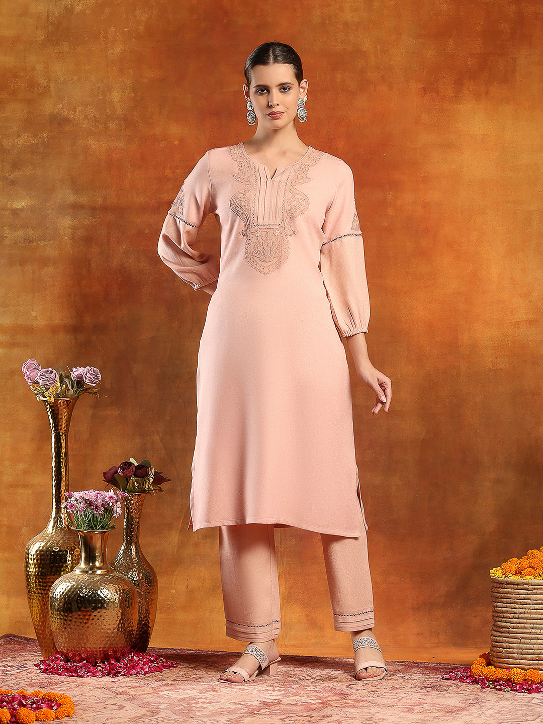 Viscose Blend Kurta Set with Ethnic Motif Embroidery