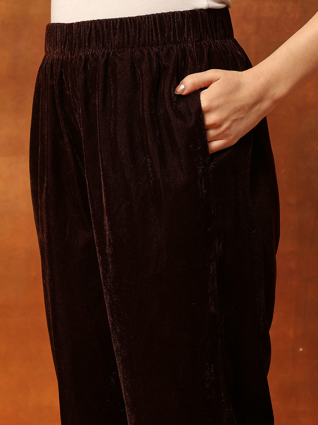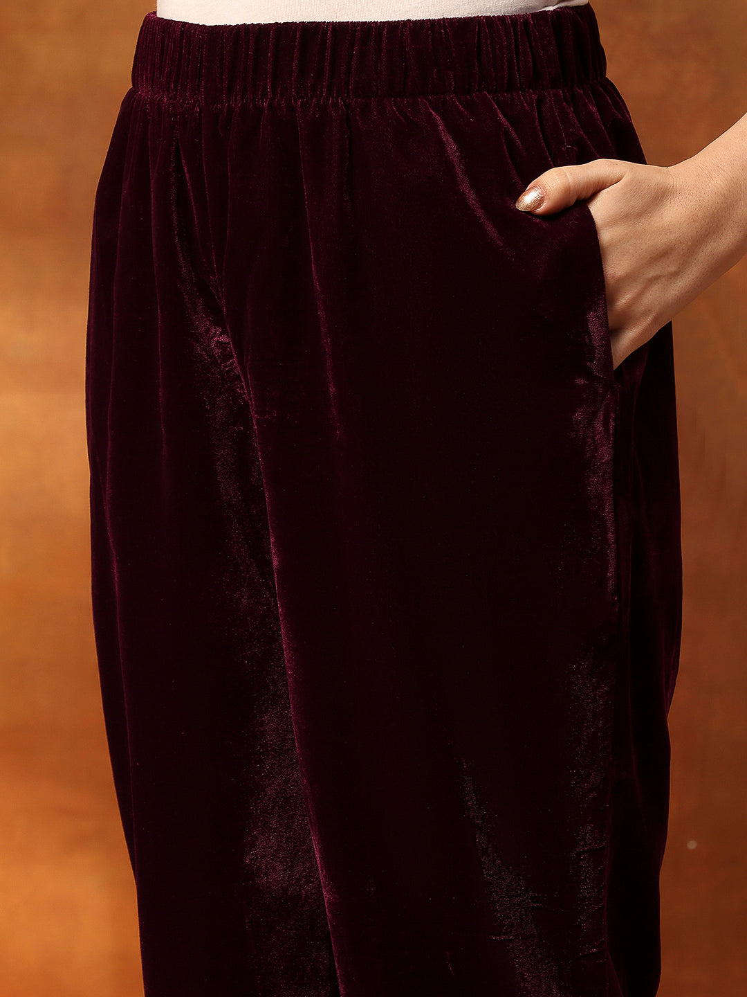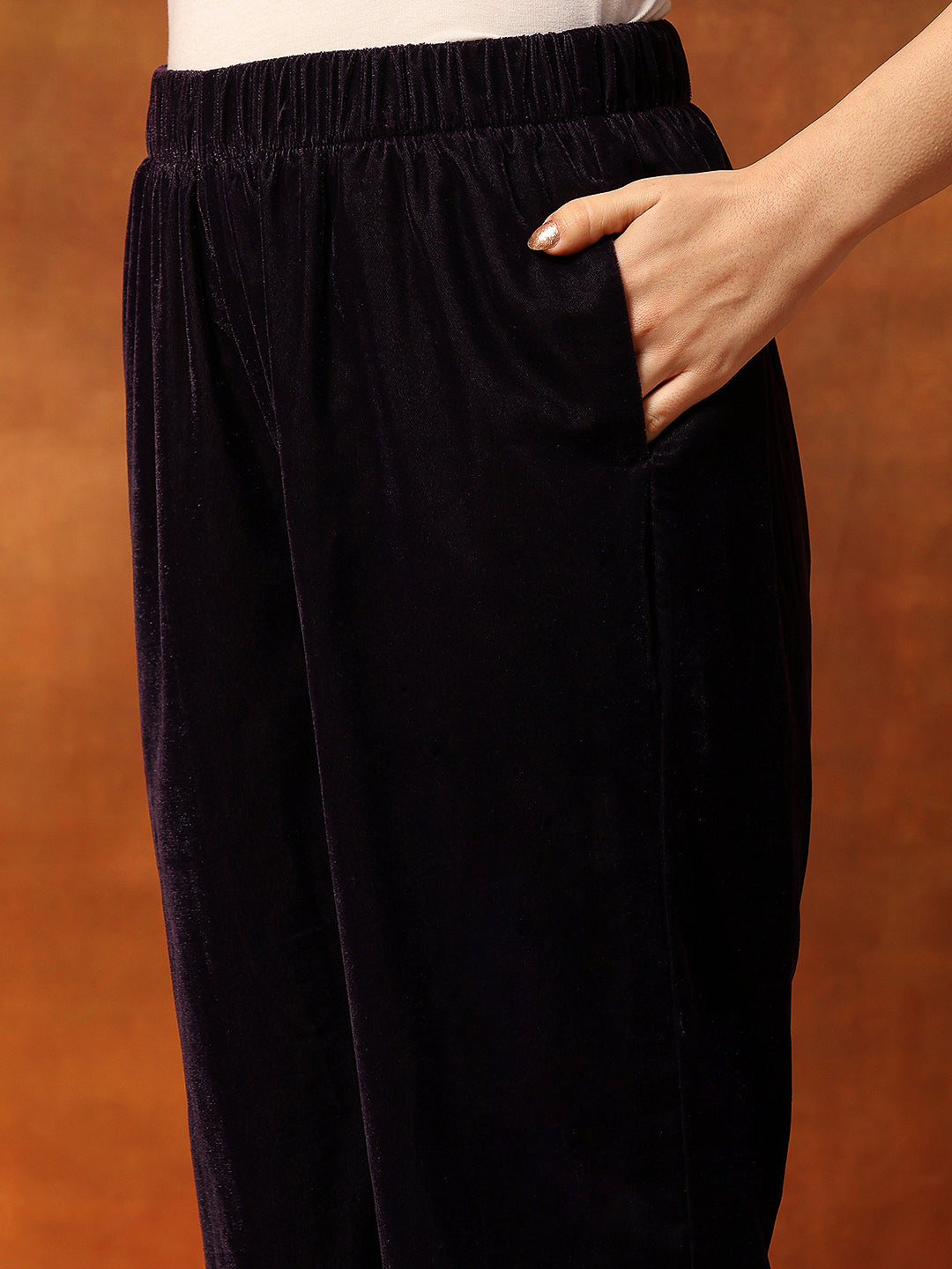 Velvet Zari Embroidered Kurta Set with Elasticated Palazzo