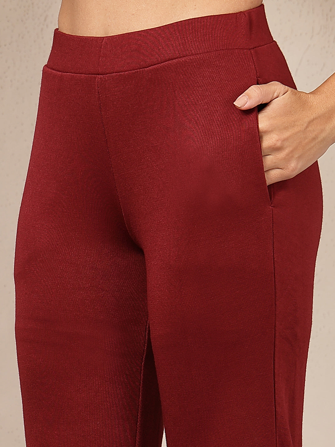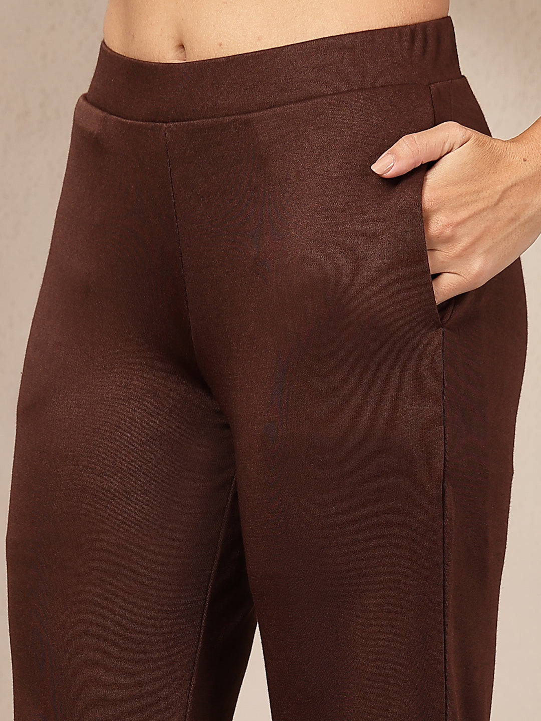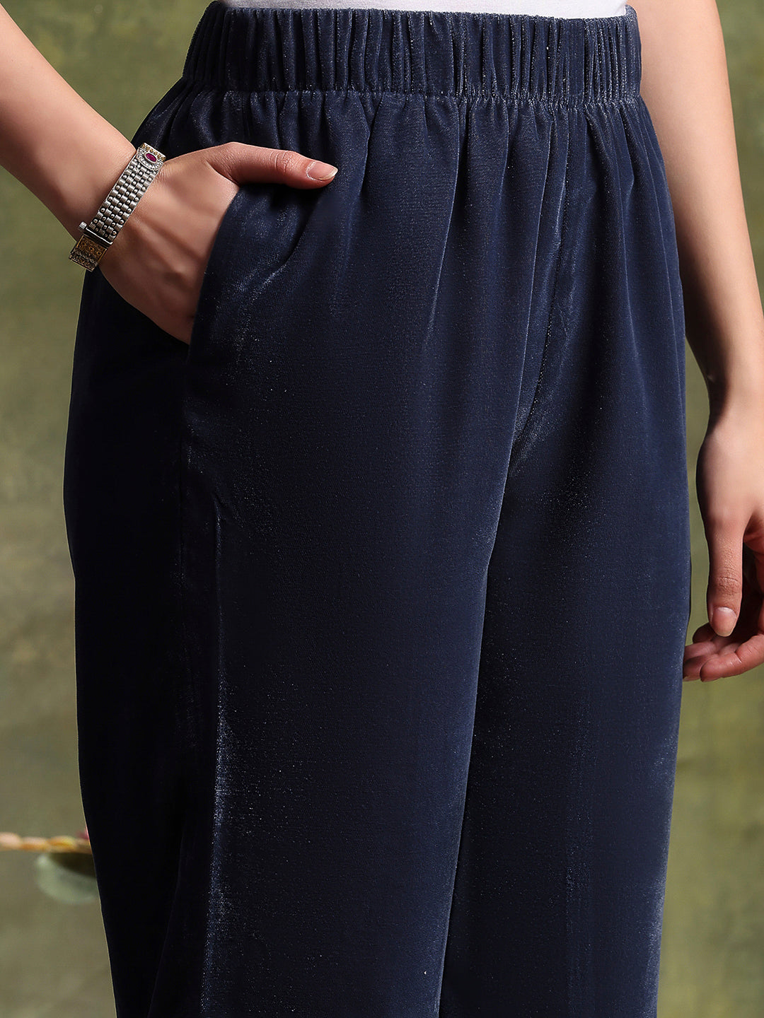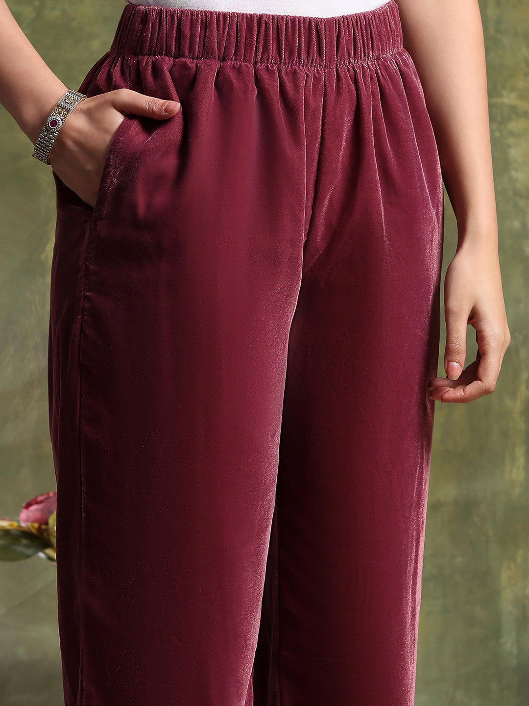 Velvet Zari Embroidered Kurta Set with Elasticated Palazzo