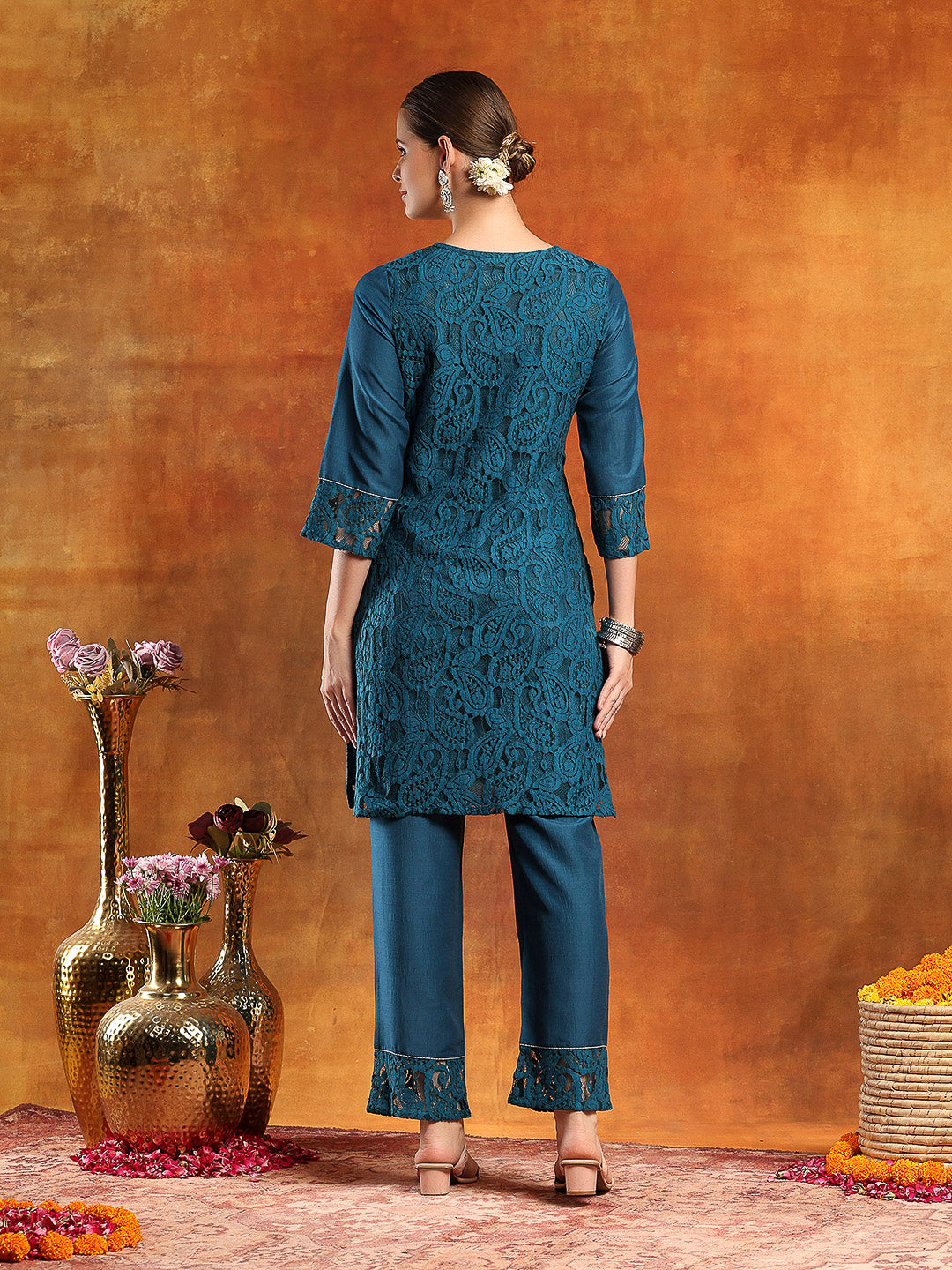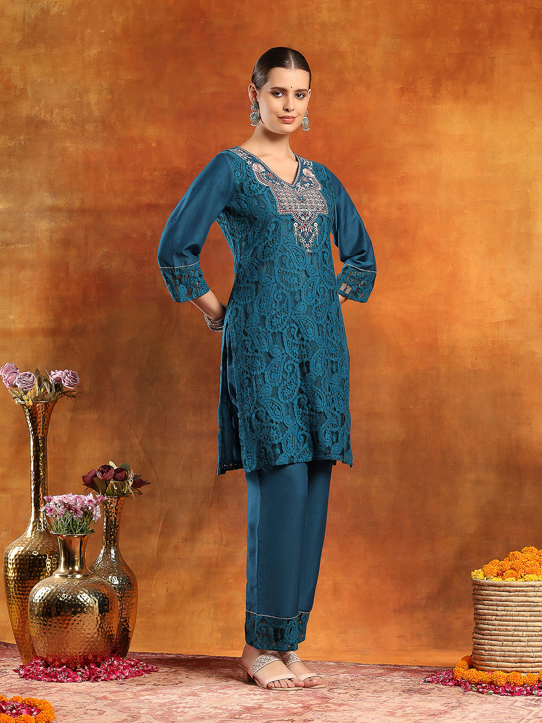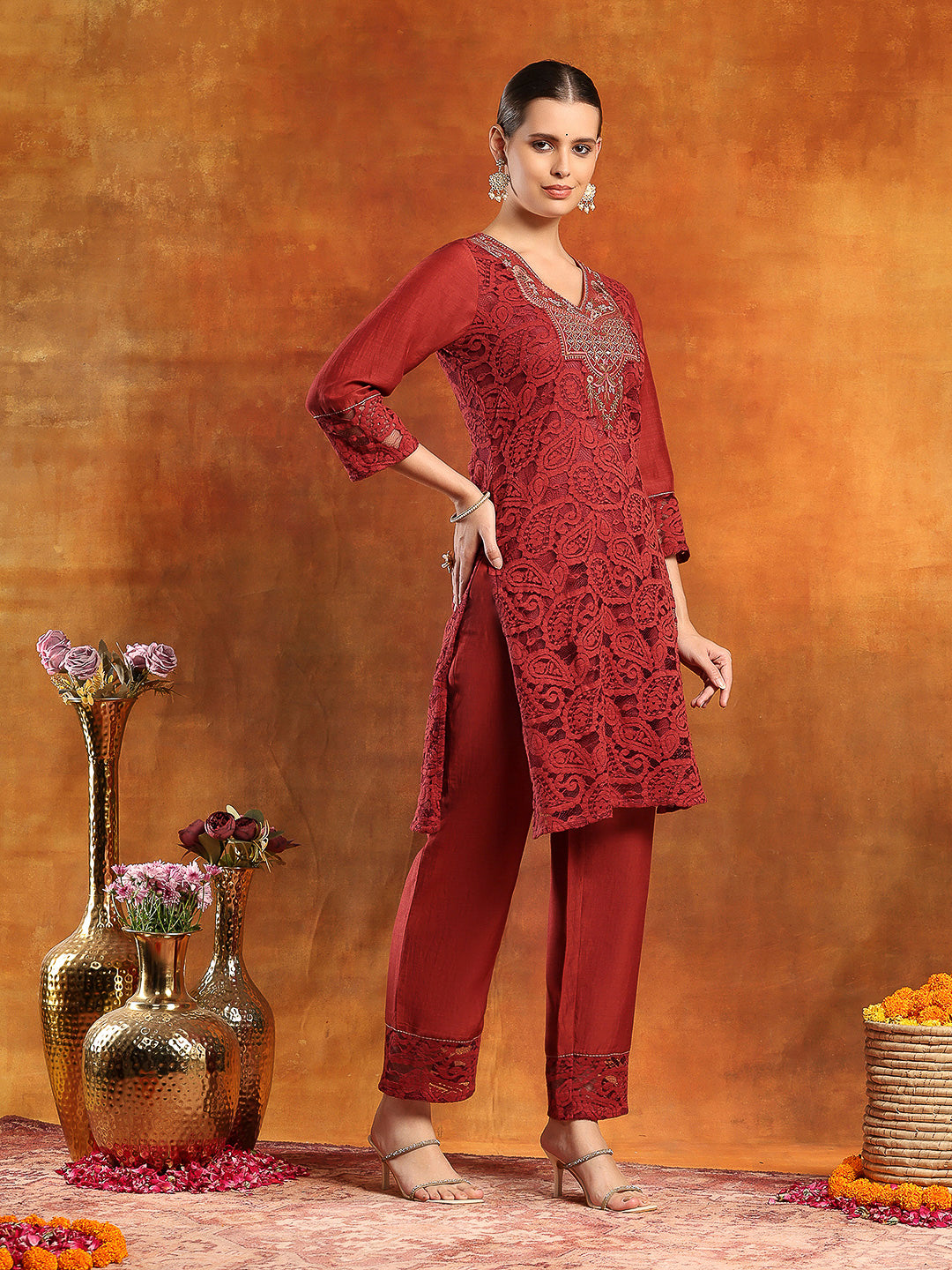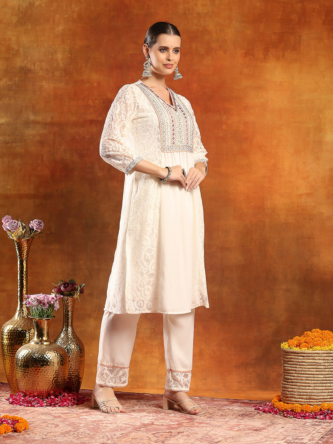 Crepe-Raschel Embroidered Kurta Set with Palazzo