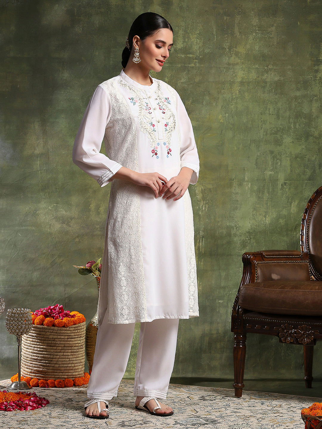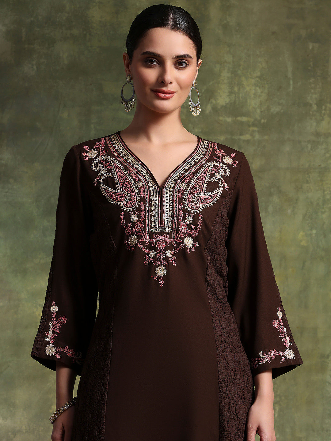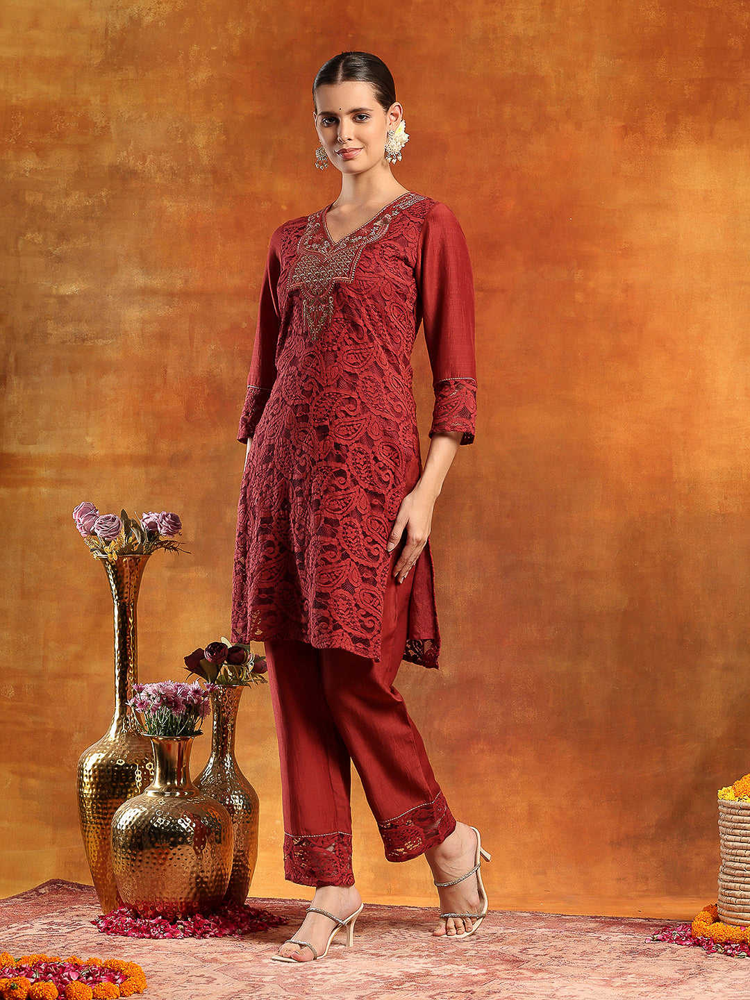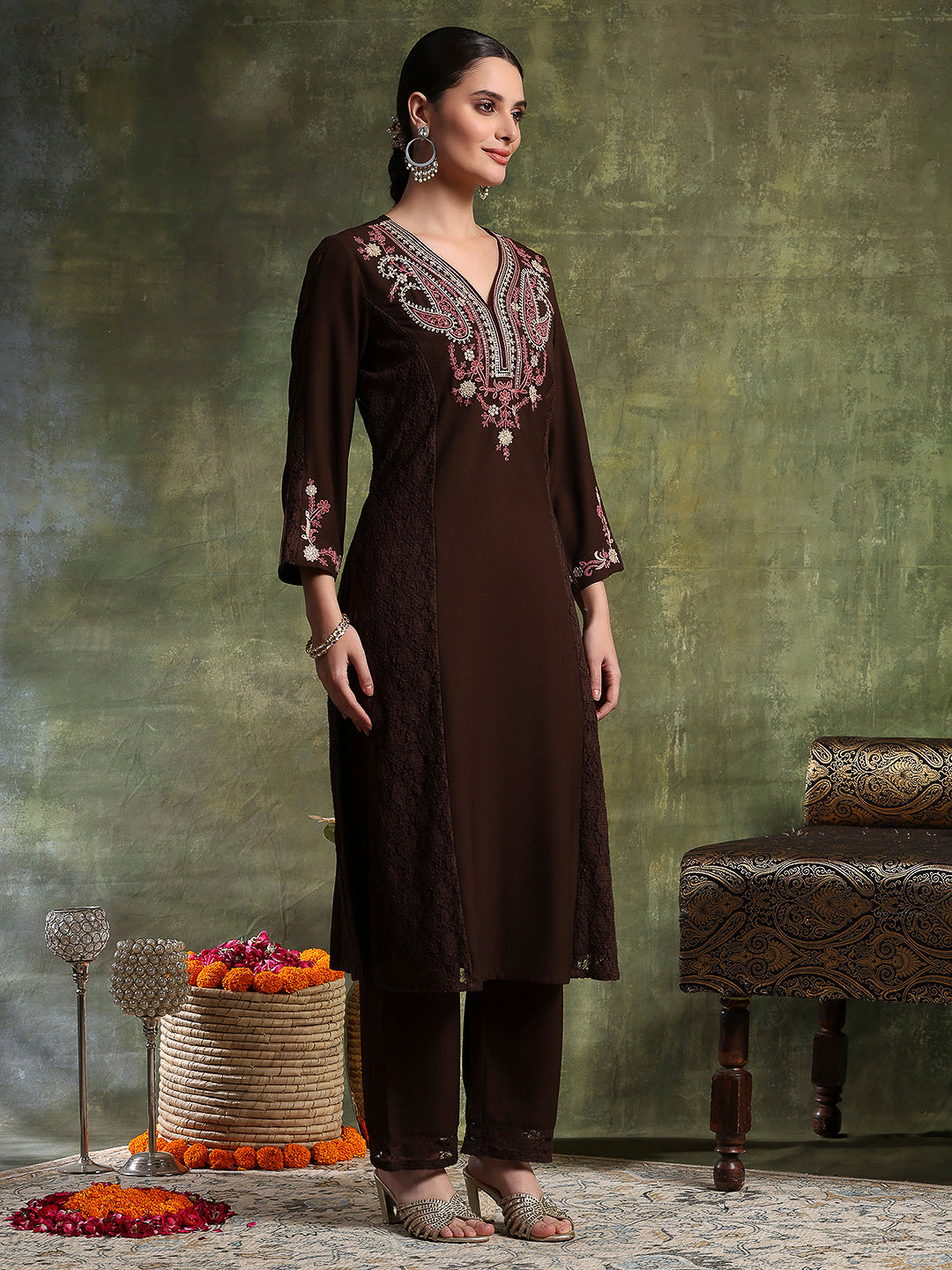 Crepe-Raschel Embroidered Kurta Set with Palazzo