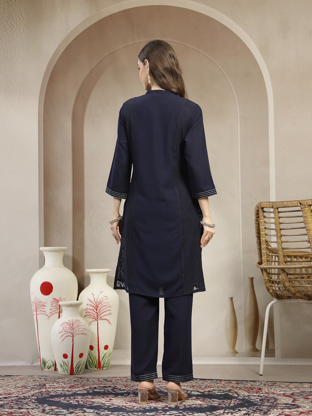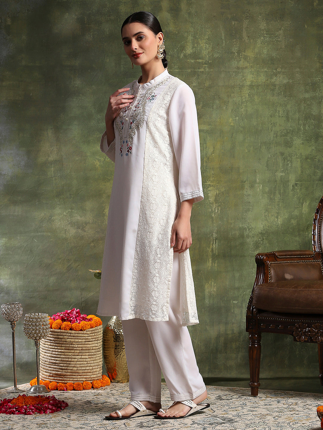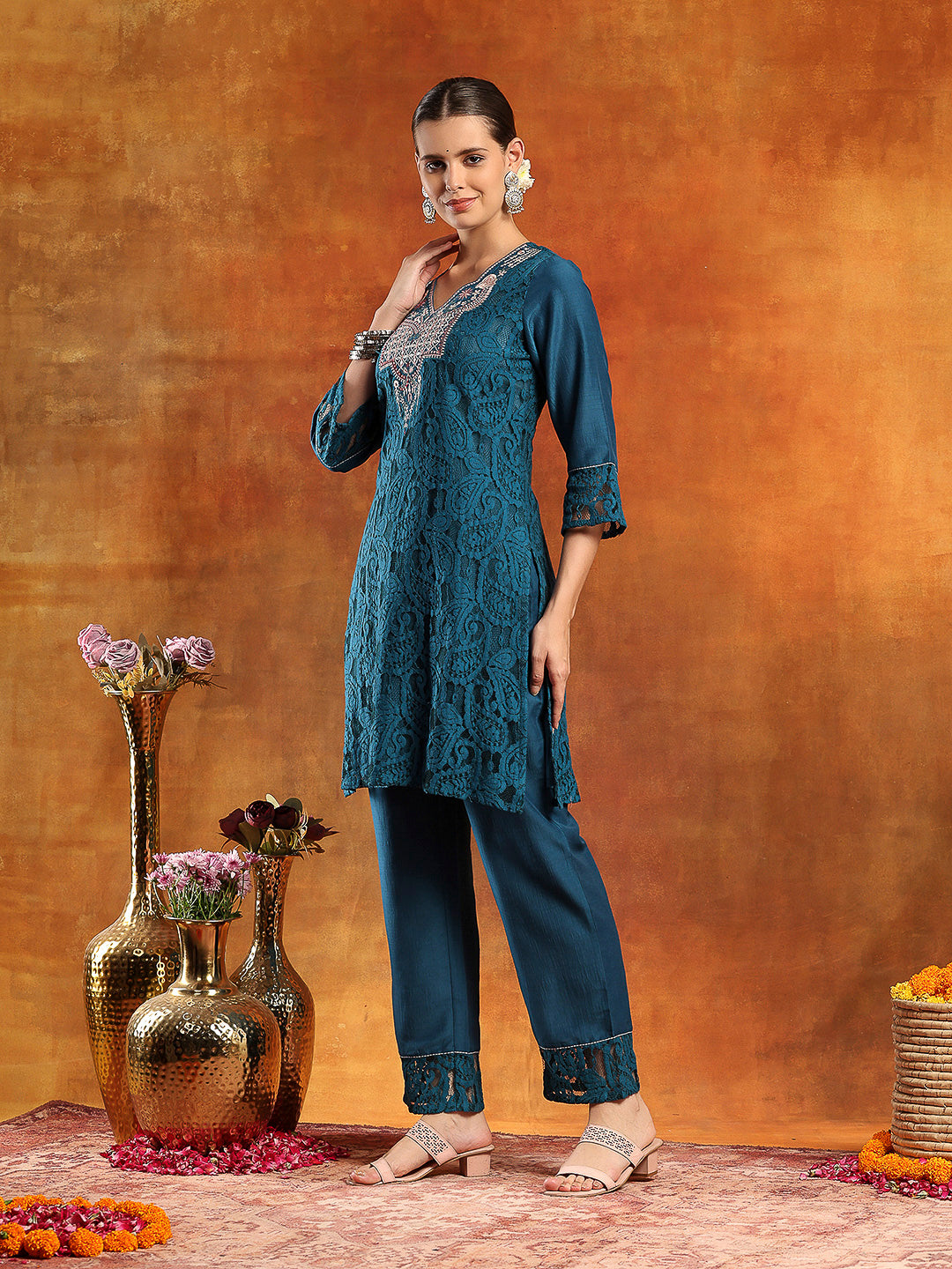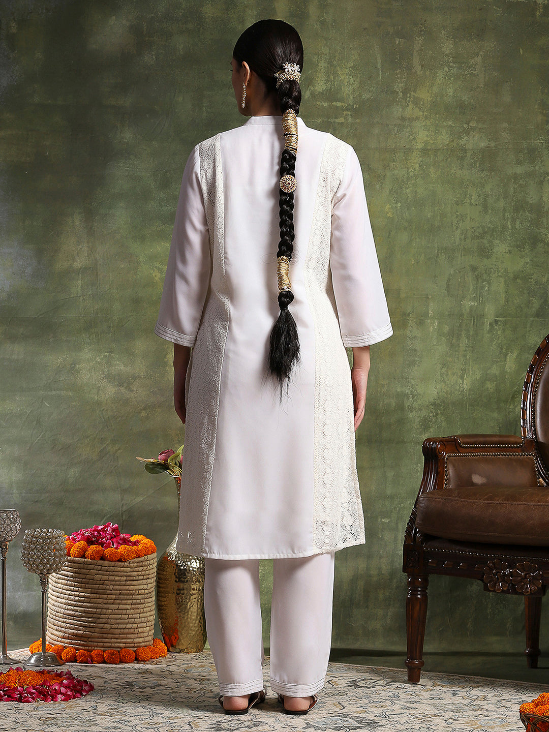 Crepe-Raschel Embroidered Kurta Set with Palazzo