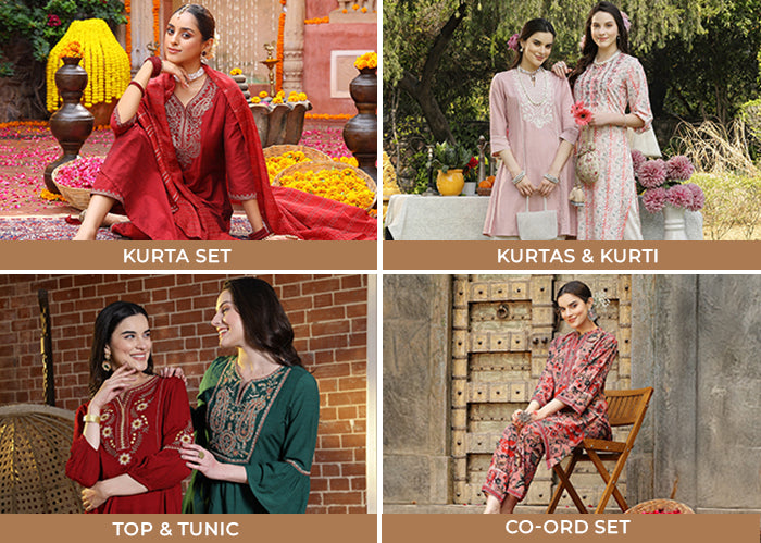 We’re all about that perfect blend of comfort and style. From chic tunics and kurtis to trendy tops and co-ords, our collection is as diverse as the women who wear them. Our collection is a vibrant mix of contemporary designs and comfortable fabrics. We believe in creating fashion that mirrors the spirit of the modern woman. From chic tunics, kurtis and kurta sets to trendy tops and co-ords, we’ve got something for every style palette.